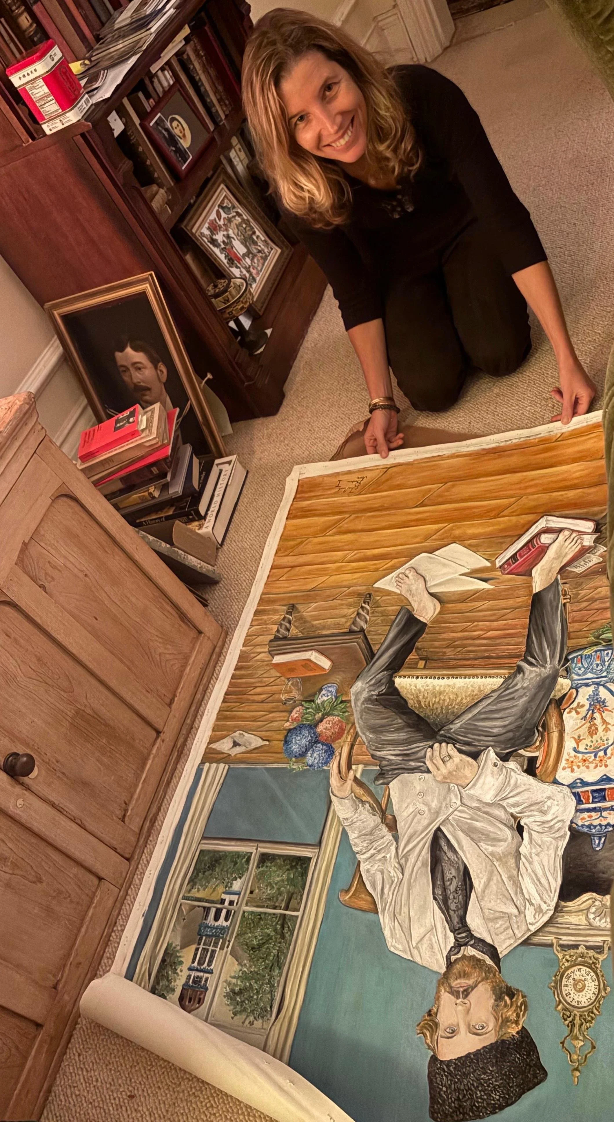 Claudia Trosso with the artwork of Peruvian artist José Manuel Barahona Pérez.